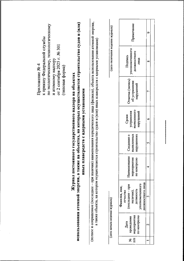 ПРИКАЗ Ростехнадзора от 02.09.2025 N 301