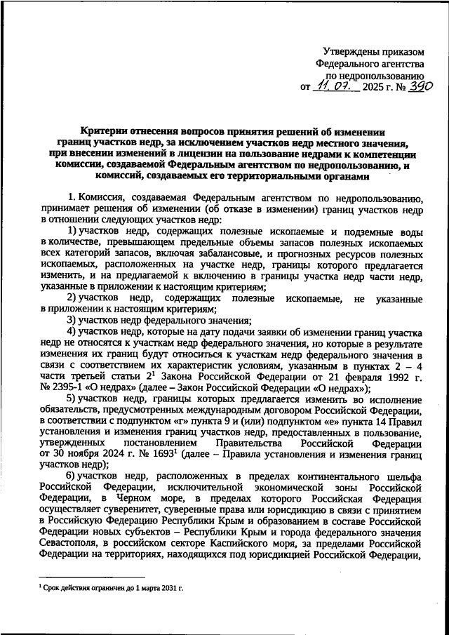 ПРИКАЗ Роснедр от 11.07.2025 N 390