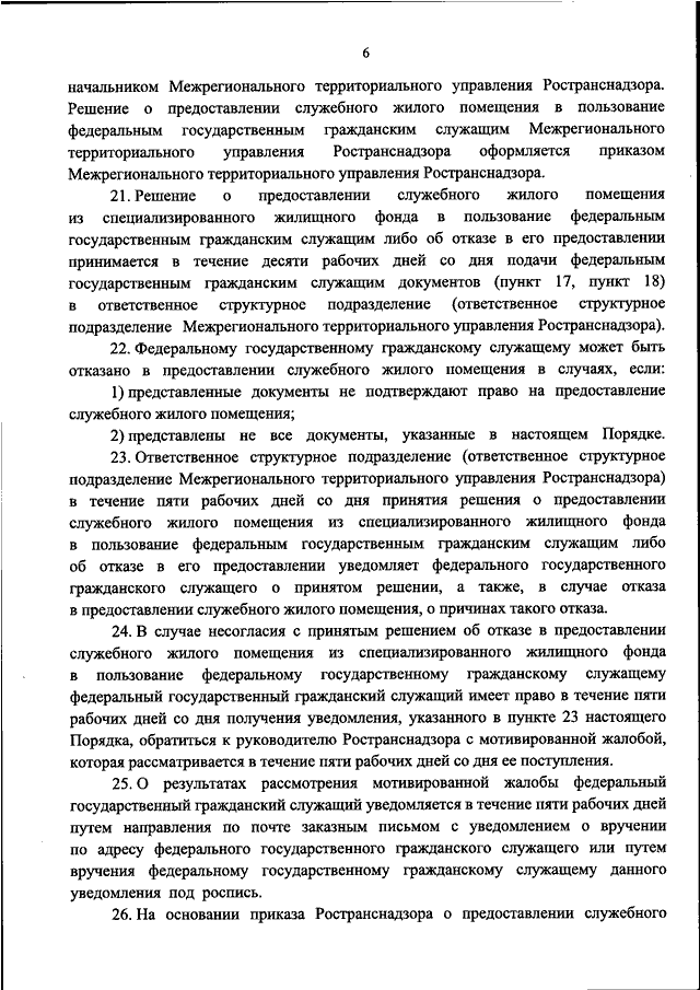 СПЕЦИАЛИЗИРОВАННЫЙ ЖИЛИЩНЫЙ ФОНД РОСТРАНСНАДЗОРА, В ПОЛЬЗОВАНИЕ