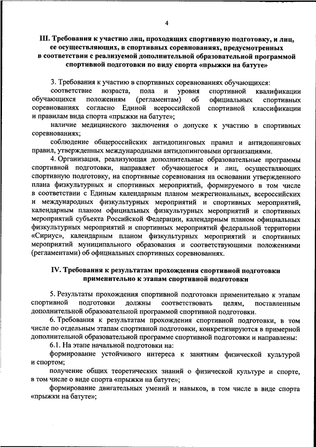 "ОБ УТВЕРЖДЕНИИ ФЕДЕРАЛЬНОГО СТАНДАРТА СПОРТИВНОЙ ПОДГОТОВКИ ПО ВИДУ СПОРТА "ПРЫЖКИ НА БАТУТЕ"