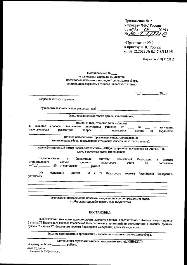 ПРИКАЗ ФНС РФ от 08.09.2025 N ЕД-7-8/772@