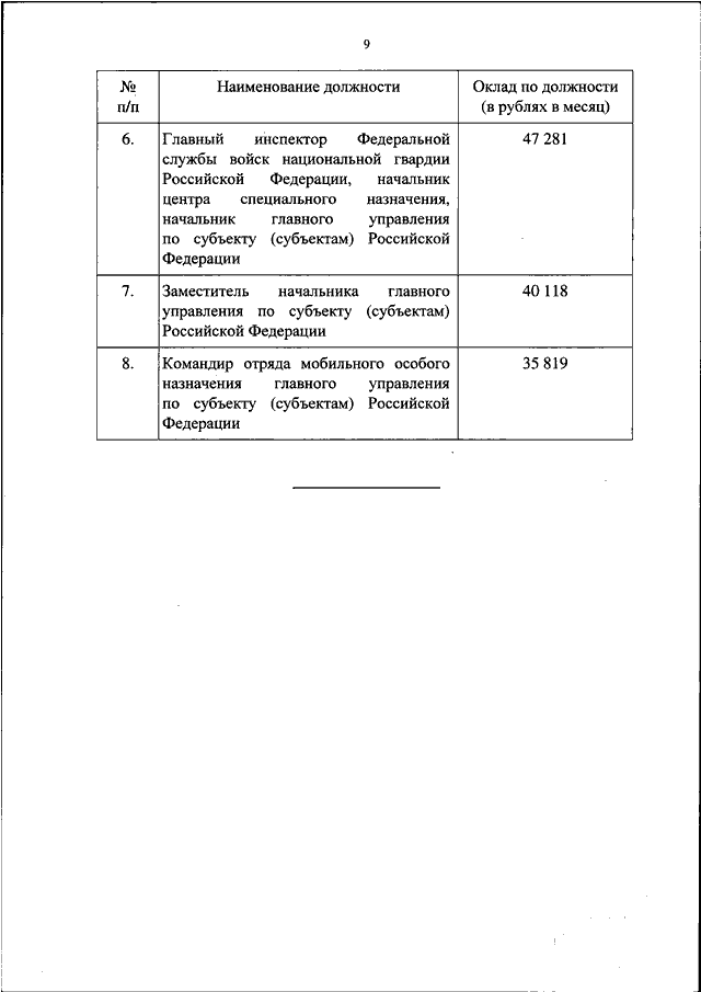 "ОБ УСТАНОВЛЕНИИ РАЗМЕРОВ ОКЛАДОВ ПО НЕТИПОВЫМ ВОИНСКИМ ДОЛЖНОСТЯМ ВОЕННОСЛУЖАЩИХ, ПРОХОДЯЩИХ ВОЕННУЮ СЛУЖБУ ПО КОНТРАКТУ В ВОЙСКАХ НАЦИОНАЛЬНОЙ ГВАРДИИ РОССИЙСКОЙ ФЕДЕРАЦИИ, ПОДЛЕЖАЩИМ ЗАМЕЩЕНИЮ ВЫСШИМИ ОФИЦЕРАМИ, И РАЗМЕРОВ ОКЛАДОВ ПО ДРУГИМ (НЕТИПОВЫМ) ДОЛЖНОСТЯМ ЛИЦ, ПРОХОДЯЩИХ СЛУЖБУ В ВОЙСКАХ НАЦИОНАЛЬНОЙ ГВАРДИИ РОССИЙСКОЙ ФЕДЕРАЦИИ И ИМЕЮЩИХ СПЕЦИАЛЬНЫЕ ЗВАНИЯ ПОЛИЦИИ, ПОДЛЕЖАЩИМ ЗАМЕЩЕНИЮ ВЫСШИМ НАЧАЛЬСТВУЮЩИМ СОСТАВОМ"