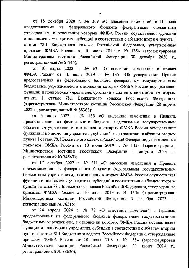 "О ПРИЗНАНИИ УТРАТИВШИМИ СИЛУ ПРИКАЗА ФМБА РОССИИ ОТ 10 ИЮЛЯ 2019 Г. N 135 "ОБ УТВЕРЖДЕНИИ ПРАВИЛ ПРЕДОСТАВЛЕНИЯ ИЗ ФЕДЕРАЛЬНОГО БЮДЖЕТА ФЕДЕРАЛЬНЫМ ГОСУДАРСТВЕННЫМ БЮДЖЕТНЫМ УЧРЕЖДЕНИЯМ, В ОТНОШЕНИИ КОТОРЫХ ФМБА РОССИИ ОСУЩЕСТВЛЯЕТ ФУНКЦИИ И ПОЛНОМОЧИЯ УЧРЕДИТЕЛЯ, СУБСИДИЙ В СООТВЕТСТВИИ С АБЗАЦЕМ ВТОРЫМ ПУНКТА 1 СТАТЬИ 78.1 БЮДЖЕТНОГО КОДЕКСА РОССИЙСКОЙ ФЕДЕРАЦИИ" И ВНЕСЕННЫХ В НЕГО ИЗМЕНЕНИЙ"