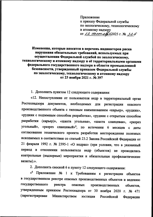 ПРИКАЗ Ростехнадзора от 22.09.2025 N 326