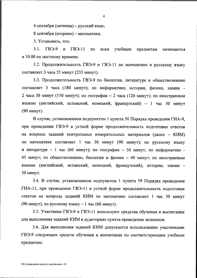 "ОБ УТВЕРЖДЕНИИ ЕДИНОГО РАСПИСАНИЯ И ПРОДОЛЖИТЕЛЬНОСТИ ПРОВЕДЕНИЯ ГОСУДАРСТВЕННОГО ВЫПУСКНОГО ЭКЗАМЕНА ПО ОБРАЗОВАТЕЛЬНЫМ ПРОГРАММАМ ОСНОВНОГО ОБЩЕГО И СРЕДНЕГО ОБЩЕГО ОБРАЗОВАНИЯ ПО КАЖДОМУ УЧЕБНОМУ ПРЕДМЕТУ, ТРЕБОВАНИЙ К ИСПОЛЬЗОВАНИЮ СРЕДСТВ ОБУЧЕНИЯ И ВОСПИТАНИЯ ПРИ ЕГО ПРОВЕДЕНИИ В 2026 ГОДУ"