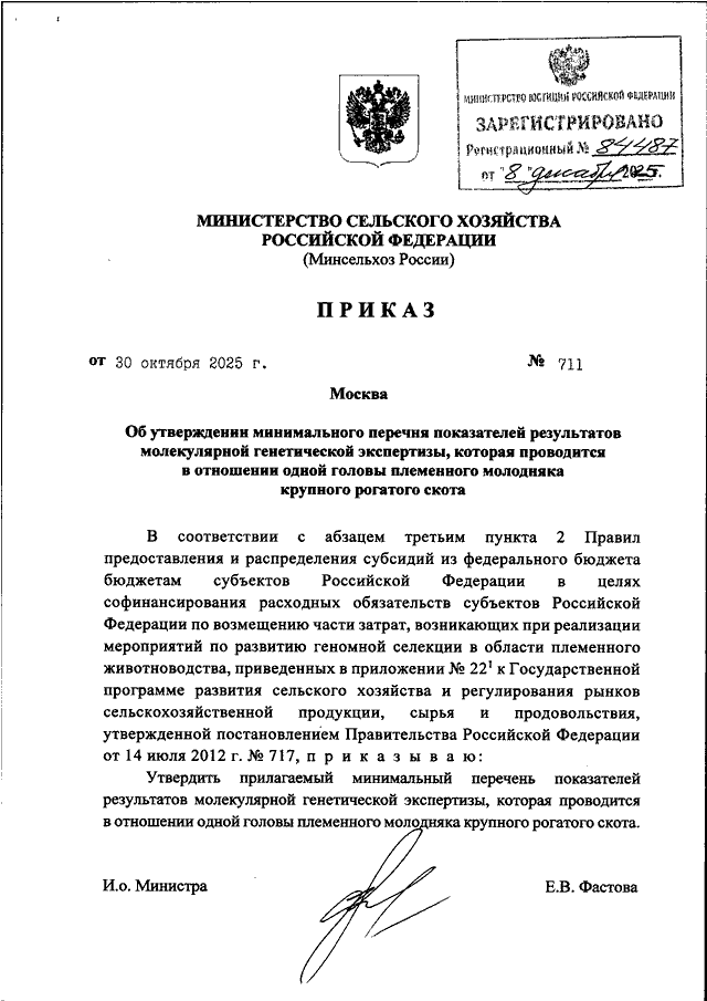 ПРИКАЗ Минсельхоза РФ от 30.10.2025 N 711