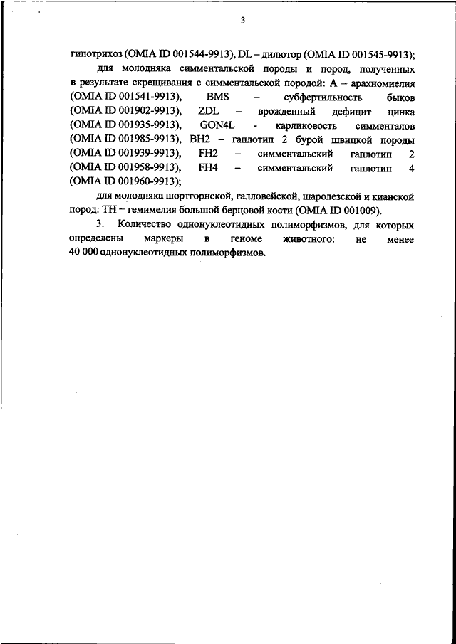 "ОБ УТВЕРЖДЕНИИ МИНИМАЛЬНОГО ПЕРЕЧНЯ ПОКАЗАТЕЛЕЙ РЕЗУЛЬТАТОВ МОЛЕКУЛЯРНОЙ ГЕНЕТИЧЕСКОЙ ЭКСПЕРТИЗЫ, КОТОРАЯ ПРОВОДИТСЯ В ОТНОШЕНИИ ОДНОЙ ГОЛОВЫ ПЛЕМЕННОГО МОЛОДНЯКА КРУПНОГО РОГАТОГО СКОТА"