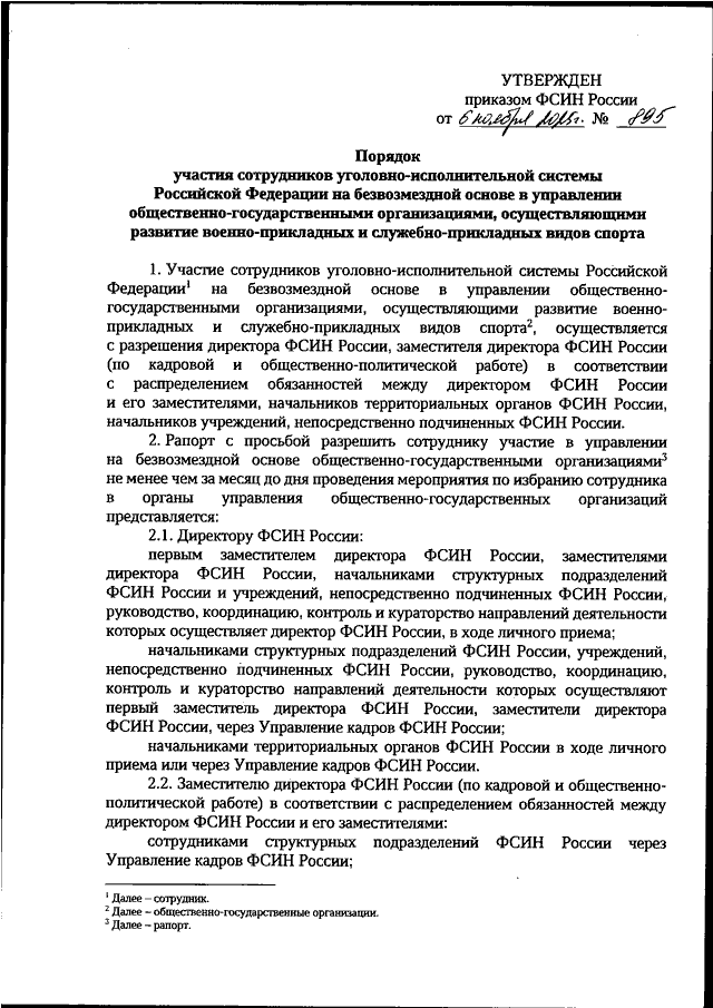 ПРИКАЗ ФСИН РФ от 06.11.2025 N 895