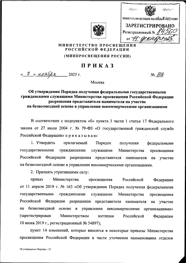 ПРИКАЗ Минпросвещения России от 07.11.2025 N 802