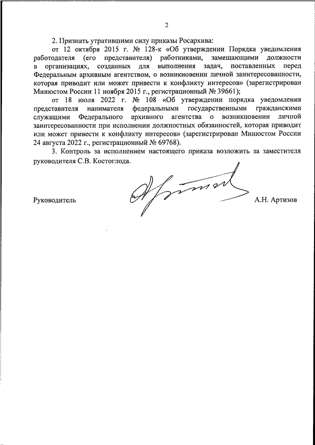 "ОБ УТВЕРЖДЕНИИ ПОРЯДКА УВЕДОМЛЕНИЯ ПРЕДСТАВИТЕЛЯ НАНИМАТЕЛЯ (РАБОТОДАТЕЛЯ) ФЕДЕРАЛЬНЫМИ ГОСУДАРСТВЕННЫМИ ГРАЖДАНСКИМИ СЛУЖАЩИМИ ФЕДЕРАЛЬНОГО АРХИВНОГО АГЕНТСТВА, РАБОТНИКАМИ, ЗАМЕЩАЮЩИМИ ОТДЕЛЬНЫЕ ДОЛЖНОСТИ НА ОСНОВАНИИ ТРУДОВОГО ДОГОВОРА В ОРГАНИЗАЦИЯХ, СОЗДАННЫХ ДЛЯ ВЫПОЛНЕНИЯ ЗАДАЧ, ПОСТАВЛЕННЫХ ПЕРЕД ФЕДЕРАЛЬНЫМ АРХИВНЫМ АГЕНТСТВОМ, О ВОЗНИКНОВЕНИИ ЛИЧНОЙ ЗАИНТЕРЕСОВАННОСТИ ПРИ ИСПОЛНЕНИИ ДОЛЖНОСТНЫХ (ТРУДОВЫХ) ОБЯЗАННОСТЕЙ, КОТОРАЯ ПРИВОДИТ ИЛИ МОЖЕТ ПРИВЕСТИ К КОНФЛИКТУ ИНТЕРЕСОВ"