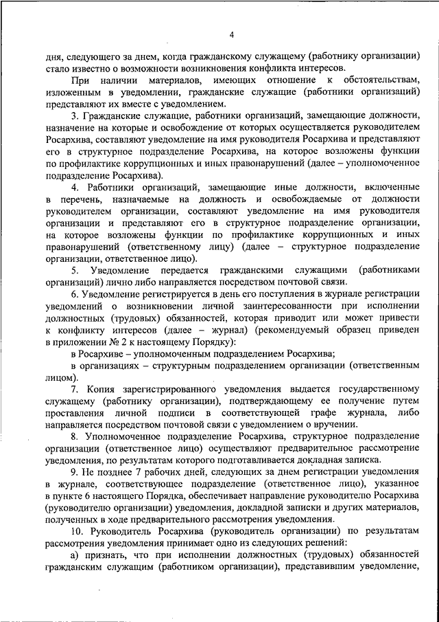 "ОБ УТВЕРЖДЕНИИ ПОРЯДКА УВЕДОМЛЕНИЯ ПРЕДСТАВИТЕЛЯ НАНИМАТЕЛЯ (РАБОТОДАТЕЛЯ) ФЕДЕРАЛЬНЫМИ ГОСУДАРСТВЕННЫМИ ГРАЖДАНСКИМИ СЛУЖАЩИМИ ФЕДЕРАЛЬНОГО АРХИВНОГО АГЕНТСТВА, РАБОТНИКАМИ, ЗАМЕЩАЮЩИМИ ОТДЕЛЬНЫЕ ДОЛЖНОСТИ НА ОСНОВАНИИ ТРУДОВОГО ДОГОВОРА В ОРГАНИЗАЦИЯХ, СОЗДАННЫХ ДЛЯ ВЫПОЛНЕНИЯ ЗАДАЧ, ПОСТАВЛЕННЫХ ПЕРЕД ФЕДЕРАЛЬНЫМ АРХИВНЫМ АГЕНТСТВОМ, О ВОЗНИКНОВЕНИИ ЛИЧНОЙ ЗАИНТЕРЕСОВАННОСТИ ПРИ ИСПОЛНЕНИИ ДОЛЖНОСТНЫХ (ТРУДОВЫХ) ОБЯЗАННОСТЕЙ, КОТОРАЯ ПРИВОДИТ ИЛИ МОЖЕТ ПРИВЕСТИ К КОНФЛИКТУ ИНТЕРЕСОВ"