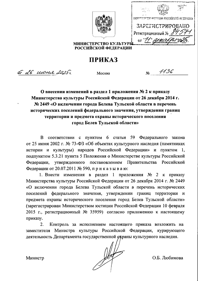ПРИКАЗ Минкультуры РФ от 26.06.2025 N 1136