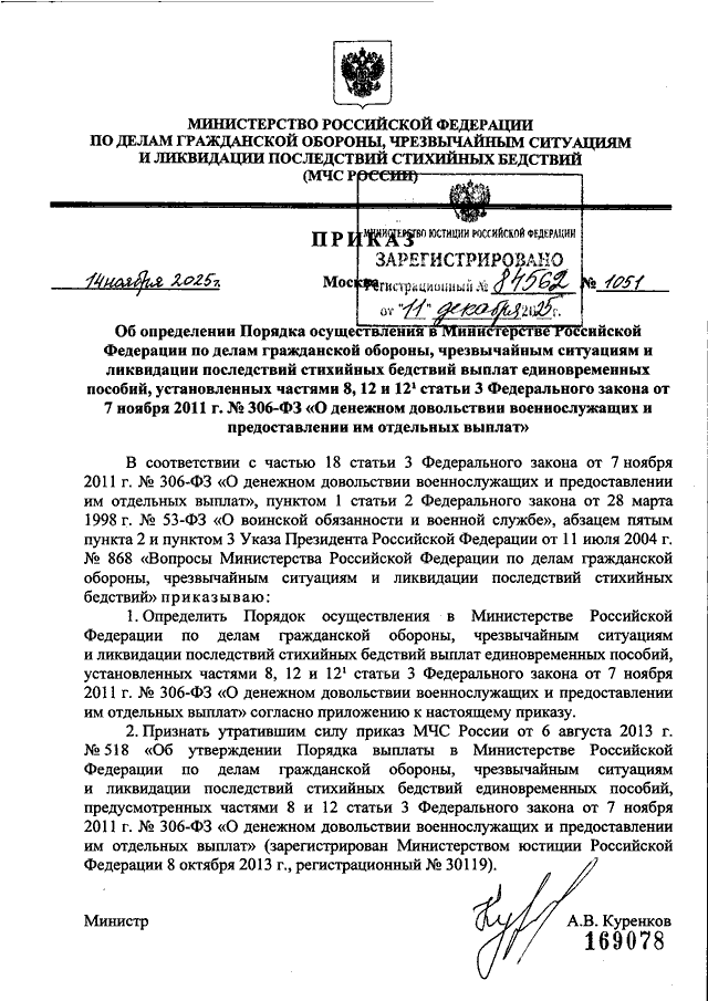 ПРИКАЗ МЧС РФ от 14.11.2025 N 1051