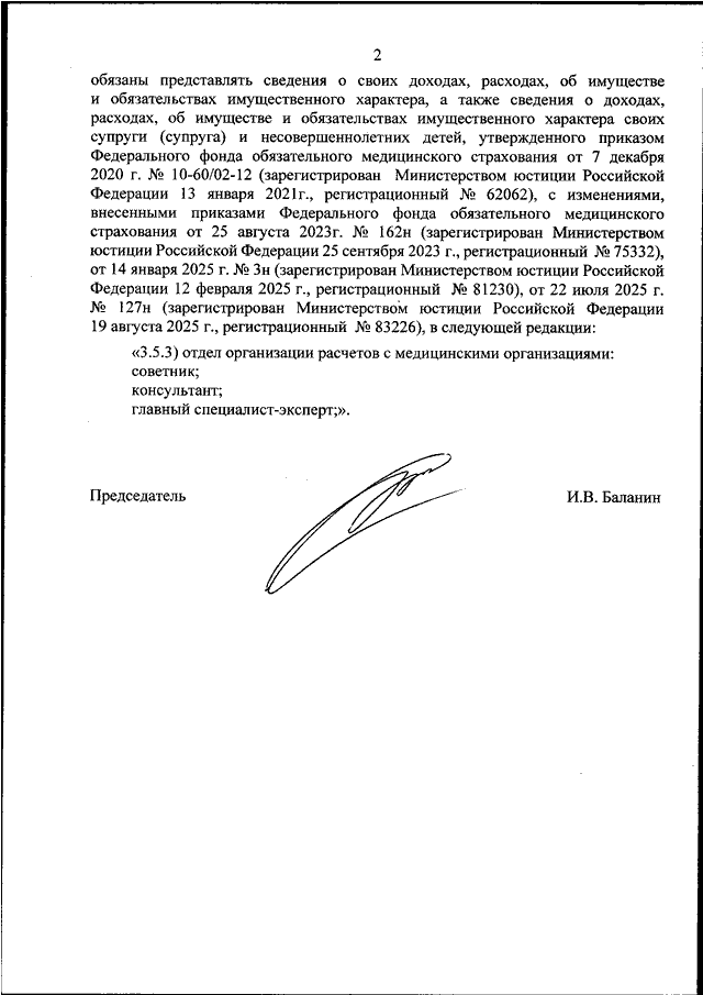 "О ВНЕСЕНИИ ИЗМЕНЕНИЯ В ПУНКТ 3 ПЕРЕЧНЯ ДОЛЖНОСТЕЙ ФЕДЕРАЛЬНОГО ФОНДА ОБЯЗАТЕЛЬНОГО МЕДИЦИНСКОГО СТРАХОВАНИЯ, ПРИ ЗАМЕЩЕНИИ КОТОРЫХ РАБОТНИКИ ОБЯЗАНЫ ПРЕДСТАВЛЯТЬ СВЕДЕНИЯ О СВОИХ ДОХОДАХ, РАСХОДАХ, ОБ ИМУЩЕСТВЕ И ОБЯЗАТЕЛЬСТВАХ ИМУЩЕСТВЕННОГО ХАРАКТЕРА, А ТАКЖЕ СВЕДЕНИЯ О ДОХОДАХ, РАСХОДАХ, ОБ ИМУЩЕСТВЕ И ОБЯЗАТЕЛЬСТВАХ ИМУЩЕСТВЕННОГО ХАРАКТЕРА СВОИХ СУПРУГИ (СУПРУГА) И НЕСОВЕРШЕННОЛЕТНИХ ДЕТЕЙ, УТВЕРЖДЕННОГО ПРИКАЗОМ ФЕДЕРАЛЬНОГО ФОНДА ОБЯЗАТЕЛЬНОГО МЕДИЦИНСКОГО СТРАХОВАНИЯ ОТ 7 ДЕКАБРЯ 2020 Г. N 10-60/02-12"