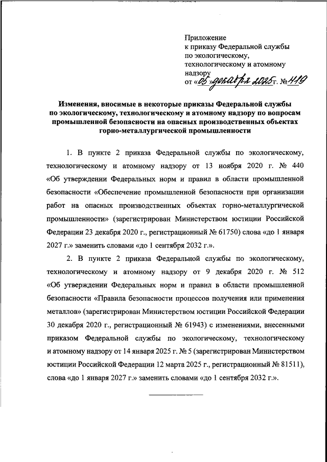 ПРИКАЗ Ростехнадзора от 05.12.2025 N 419