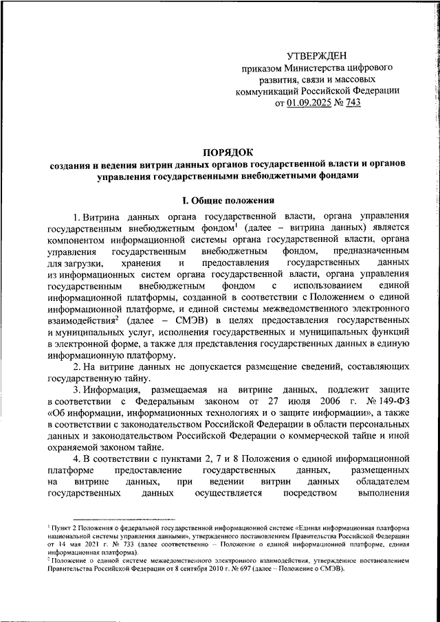 ПРИКАЗ Минцифры России от 01.09.2025 N 743