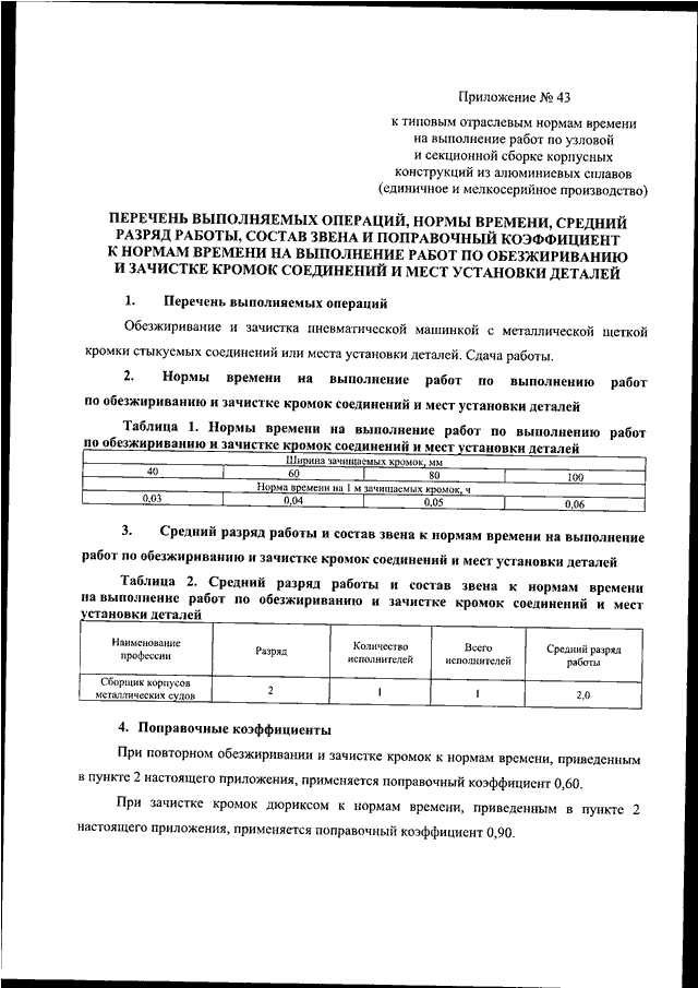 "ОБ УТВЕРЖДЕНИИ ТИПОВЫХ ОТРАСЛЕВЫХ НОРМ ВРЕМЕНИ НА ВЫПОЛНЕНИЕ РАБОТ ПО СТРОИТЕЛЬСТВУ КОРАБЛЕЙ, СУДОВ И ПЛАВУЧИХ КОНСТРУКЦИЙ (ЕДИНИЧНОЕ И МЕЛКОСЕРИЙНОЕ ПРОИЗВОДСТВО)"
