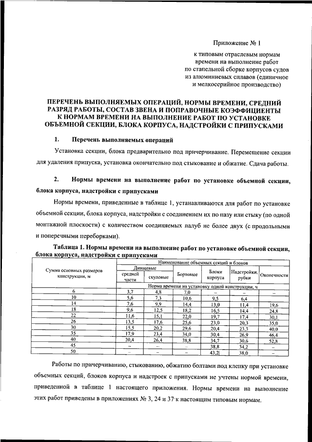 "ОБ УТВЕРЖДЕНИИ ТИПОВЫХ ОТРАСЛЕВЫХ НОРМ ВРЕМЕНИ НА ВЫПОЛНЕНИЕ РАБОТ ПО СТРОИТЕЛЬСТВУ КОРАБЛЕЙ, СУДОВ И ПЛАВУЧИХ КОНСТРУКЦИЙ (ЕДИНИЧНОЕ И МЕЛКОСЕРИЙНОЕ ПРОИЗВОДСТВО)"