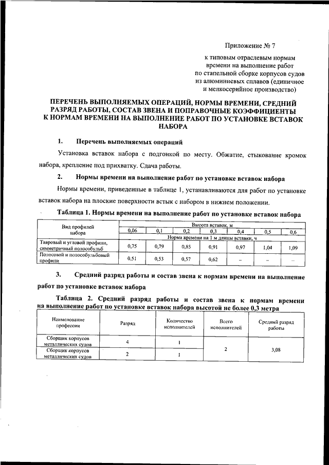 "ОБ УТВЕРЖДЕНИИ ТИПОВЫХ ОТРАСЛЕВЫХ НОРМ ВРЕМЕНИ НА ВЫПОЛНЕНИЕ РАБОТ ПО СТРОИТЕЛЬСТВУ КОРАБЛЕЙ, СУДОВ И ПЛАВУЧИХ КОНСТРУКЦИЙ (ЕДИНИЧНОЕ И МЕЛКОСЕРИЙНОЕ ПРОИЗВОДСТВО)"