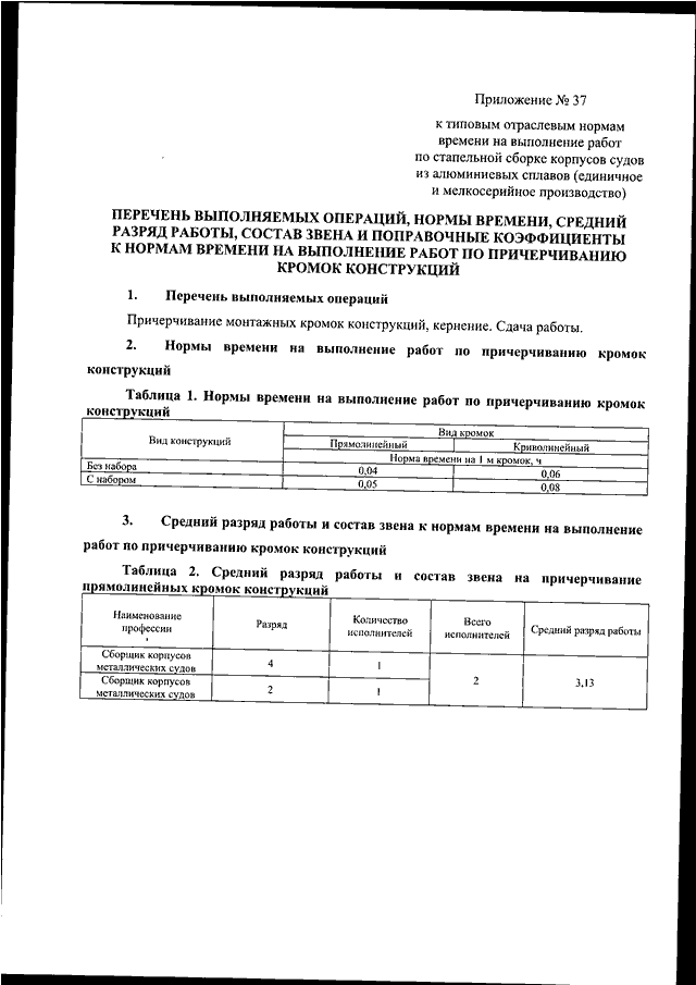 "ОБ УТВЕРЖДЕНИИ ТИПОВЫХ ОТРАСЛЕВЫХ НОРМ ВРЕМЕНИ НА ВЫПОЛНЕНИЕ РАБОТ ПО СТРОИТЕЛЬСТВУ КОРАБЛЕЙ, СУДОВ И ПЛАВУЧИХ КОНСТРУКЦИЙ (ЕДИНИЧНОЕ И МЕЛКОСЕРИЙНОЕ ПРОИЗВОДСТВО)"