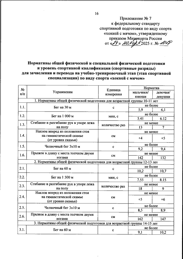 ПРИКАЗ Минспорта РФ от 24.11.2025 N 1018