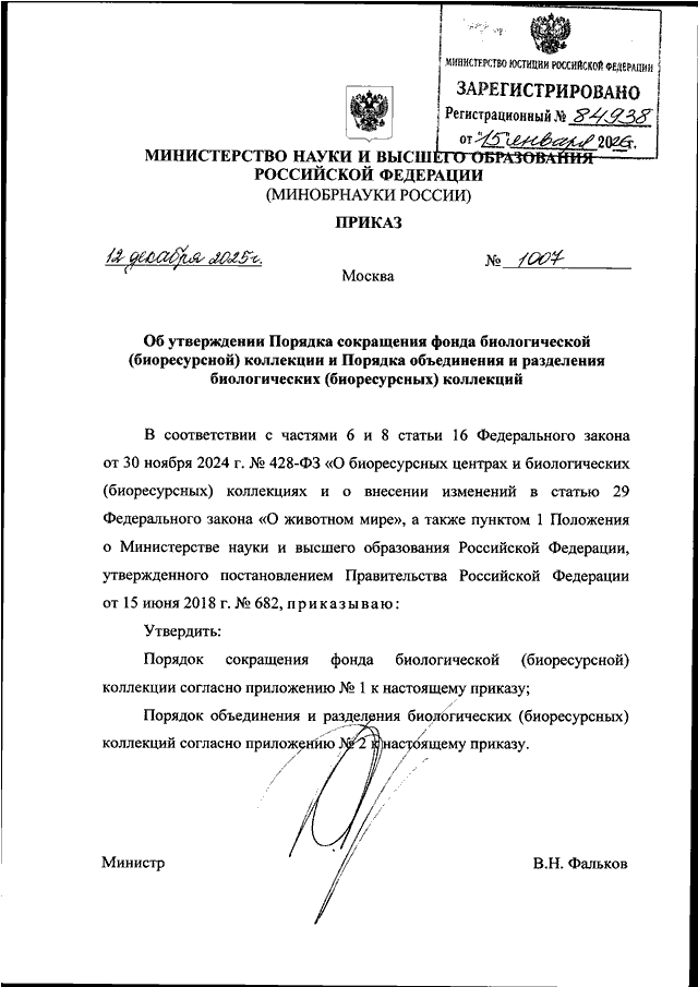 ПРИКАЗ Минобрнауки РФ от 12.12.2025 N 1007