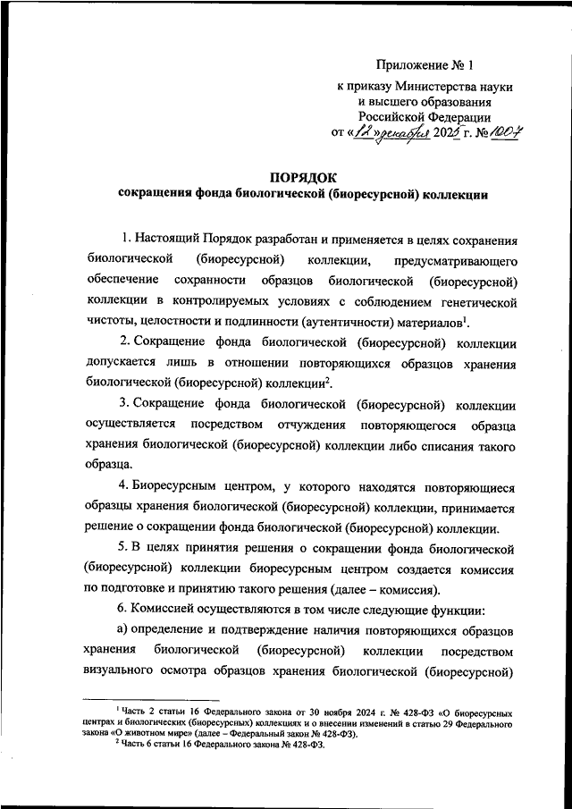 "ОБ УТВЕРЖДЕНИИ ПОРЯДКА СОКРАЩЕНИЯ ФОНДА БИОЛОГИЧЕСКОЙ (БИОРЕСУРСНОЙ) КОЛЛЕКЦИИ И ПОРЯДКА ОБЪЕДИНЕНИЯ И РАЗДЕЛЕНИЯ БИОЛОГИЧЕСКИХ (БИОРЕСУРСНЫХ) КОЛЛЕКЦИЙ"
