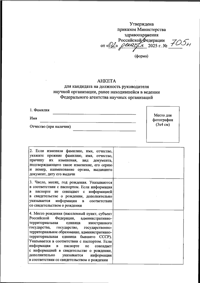 ПРИКАЗ Минздрава РФ от 02.12.2025 N 705н